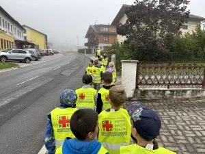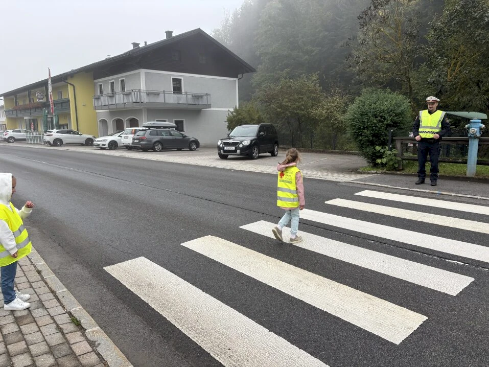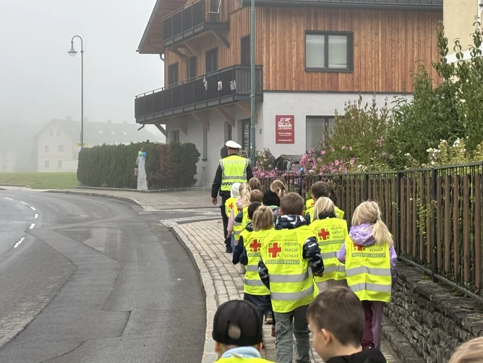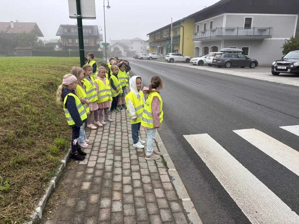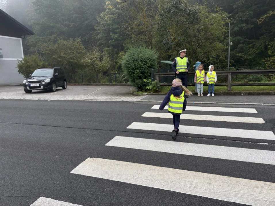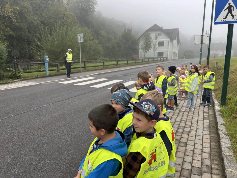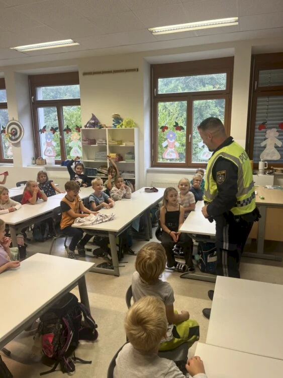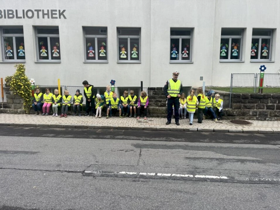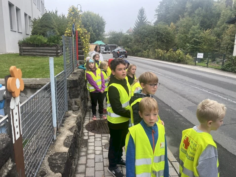 25.09.2025Die Schülerinnen und Schüler beider Klassen nahmen an einem Verkehrssicherheitstraining mit Herrn Enne, von der Polizei Kirchberg, teil. Der Schwerpunkt lag auf dem sicheren Überqueren der Straße, sowohl mit, als auch ohne Zebrastreifen. Trotz des hohen Verkehrsaufkommens aufgrund des Aufbaus für den Dirndlkirtag, meisterten die Kinder die Übungen mit großer Aufmerksamkeit und Geschick.
