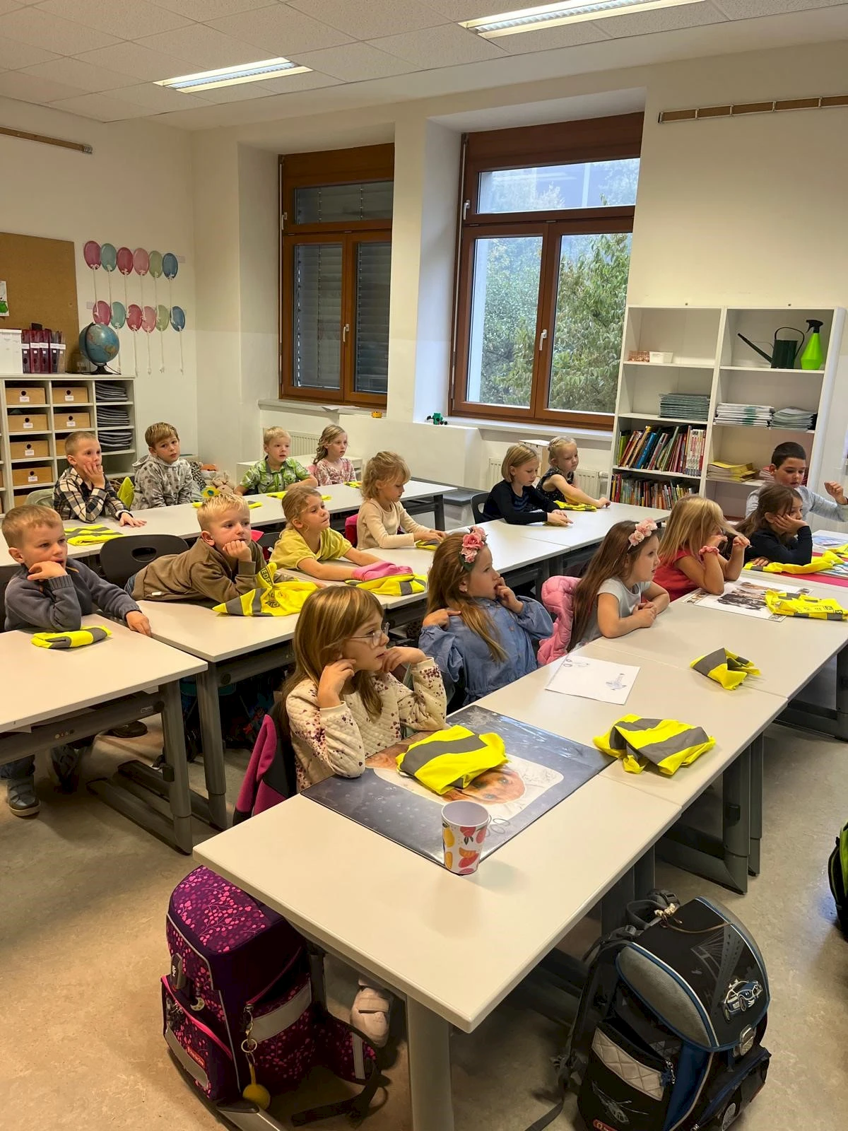 08.10.2024Am Dienstag, den 8. Oktober 2024 besuchte ein Polizist die 1. und 2. Klasse der VS Frankenfels. Zuerst wurde in der Klasse besprochen, welche Gefahren beim Überqueren der Straße – ohne Zebrastreifen - lauern und warum es so wichtig ist, sich mehrmals zu vergewissern, dass sicher kein Fahrzeug fährt.